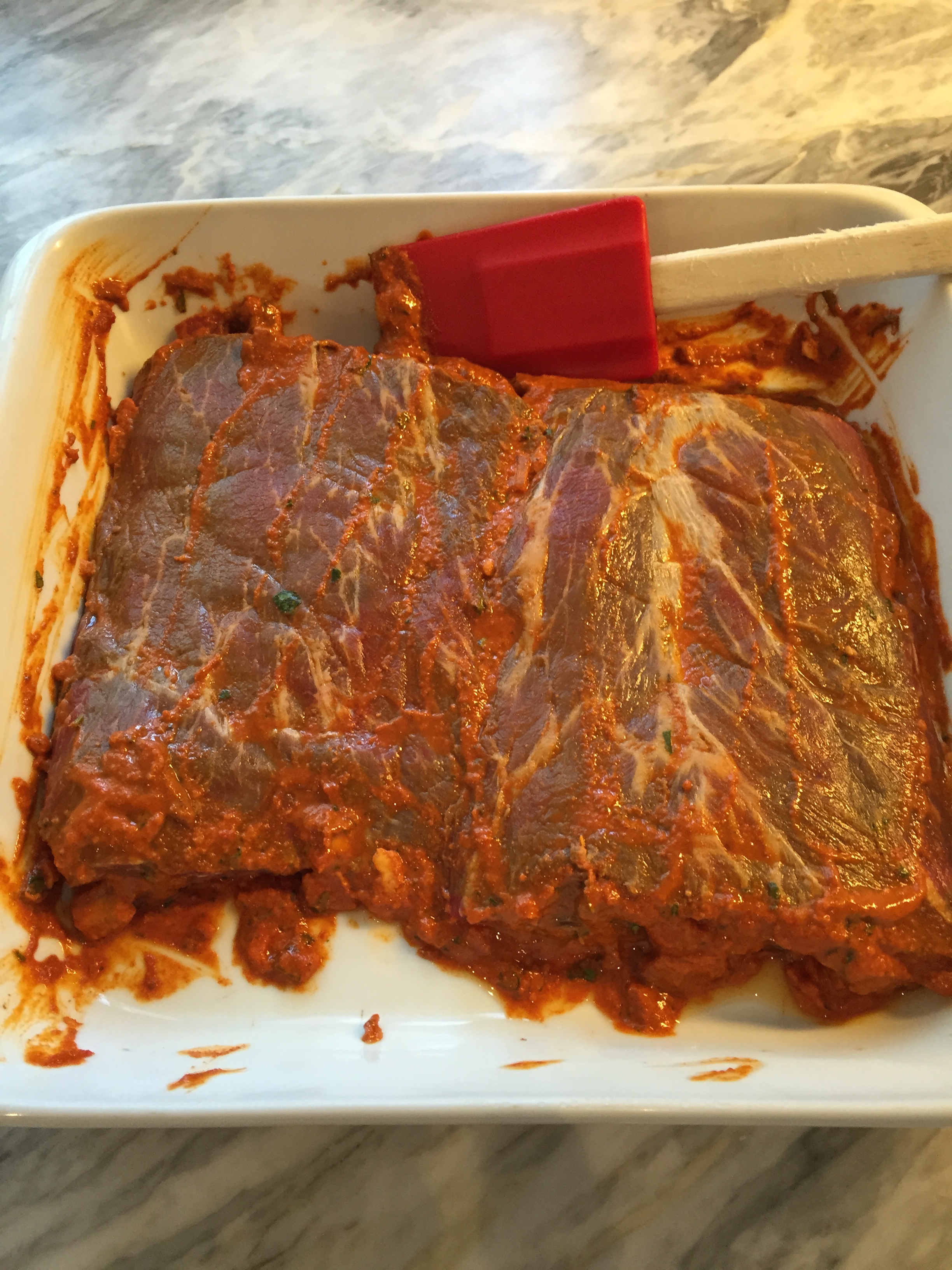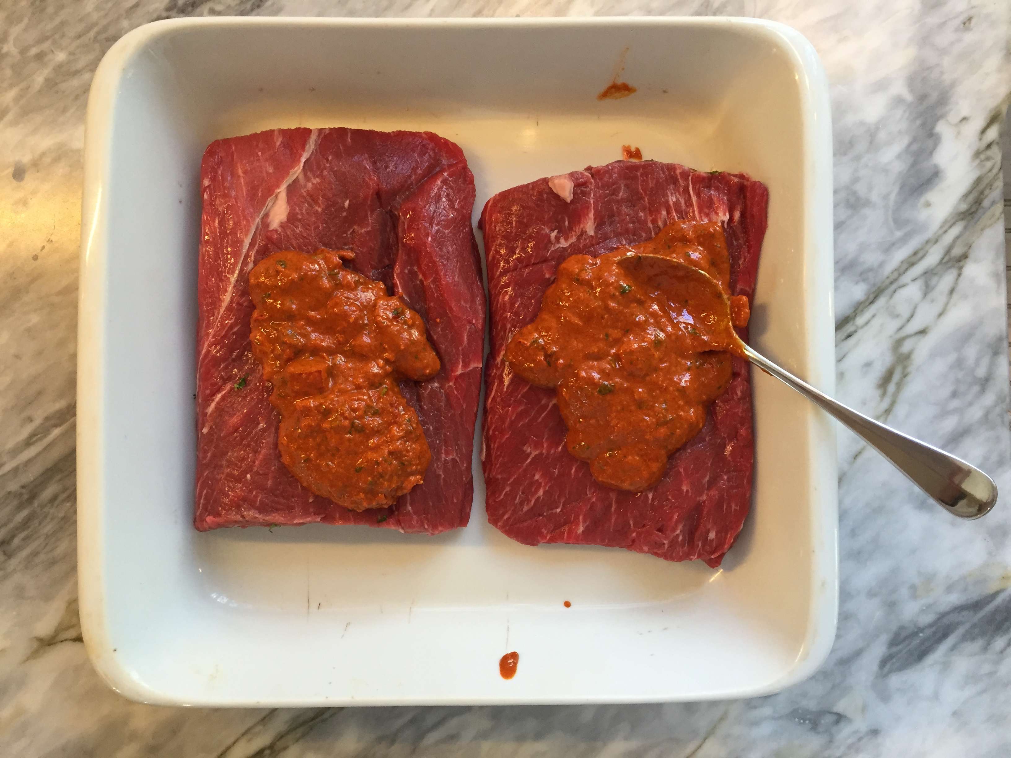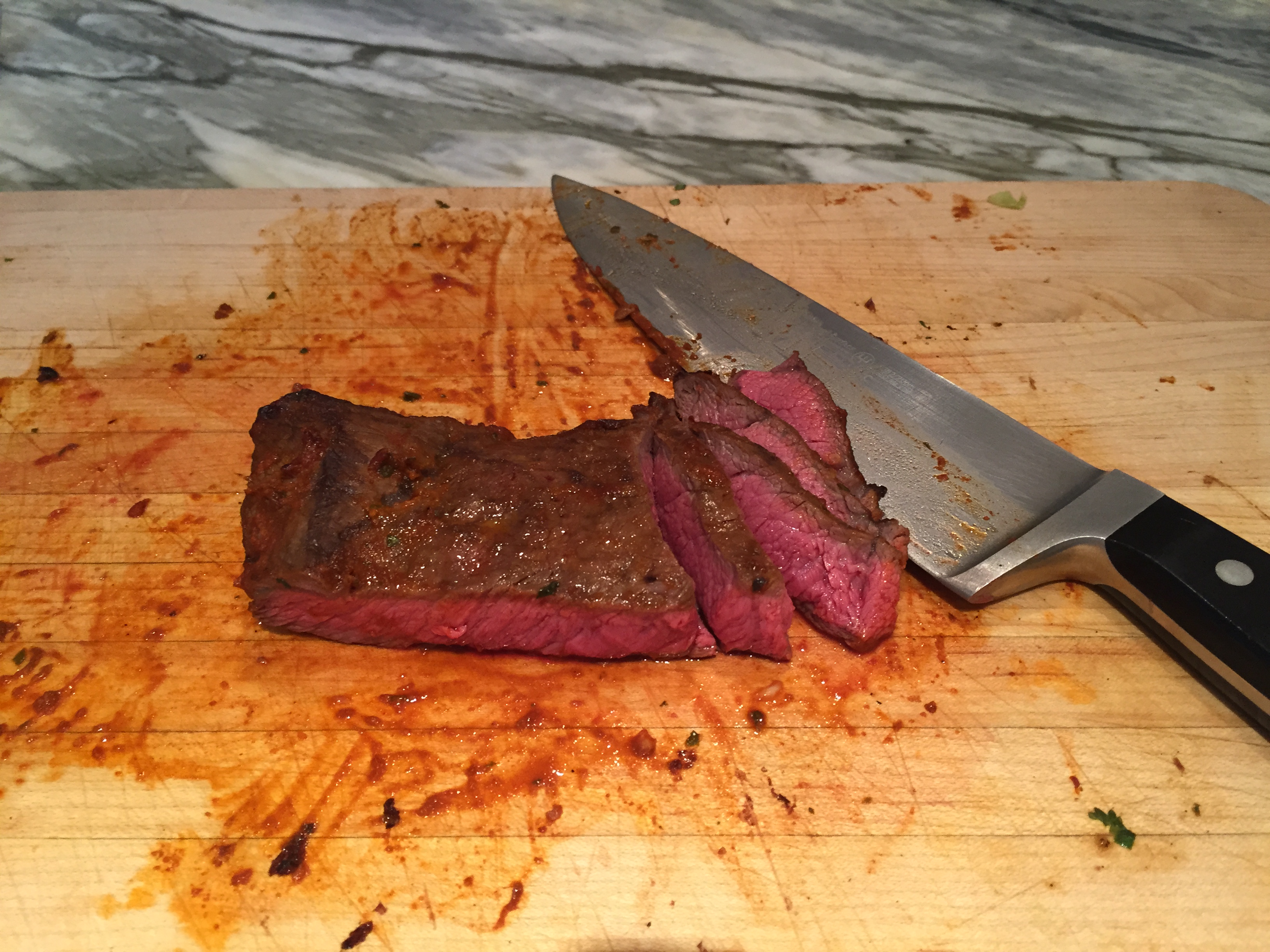 1 pound flat iron steak (you can also use skirt or flank steak), cut into 2 equal pieces