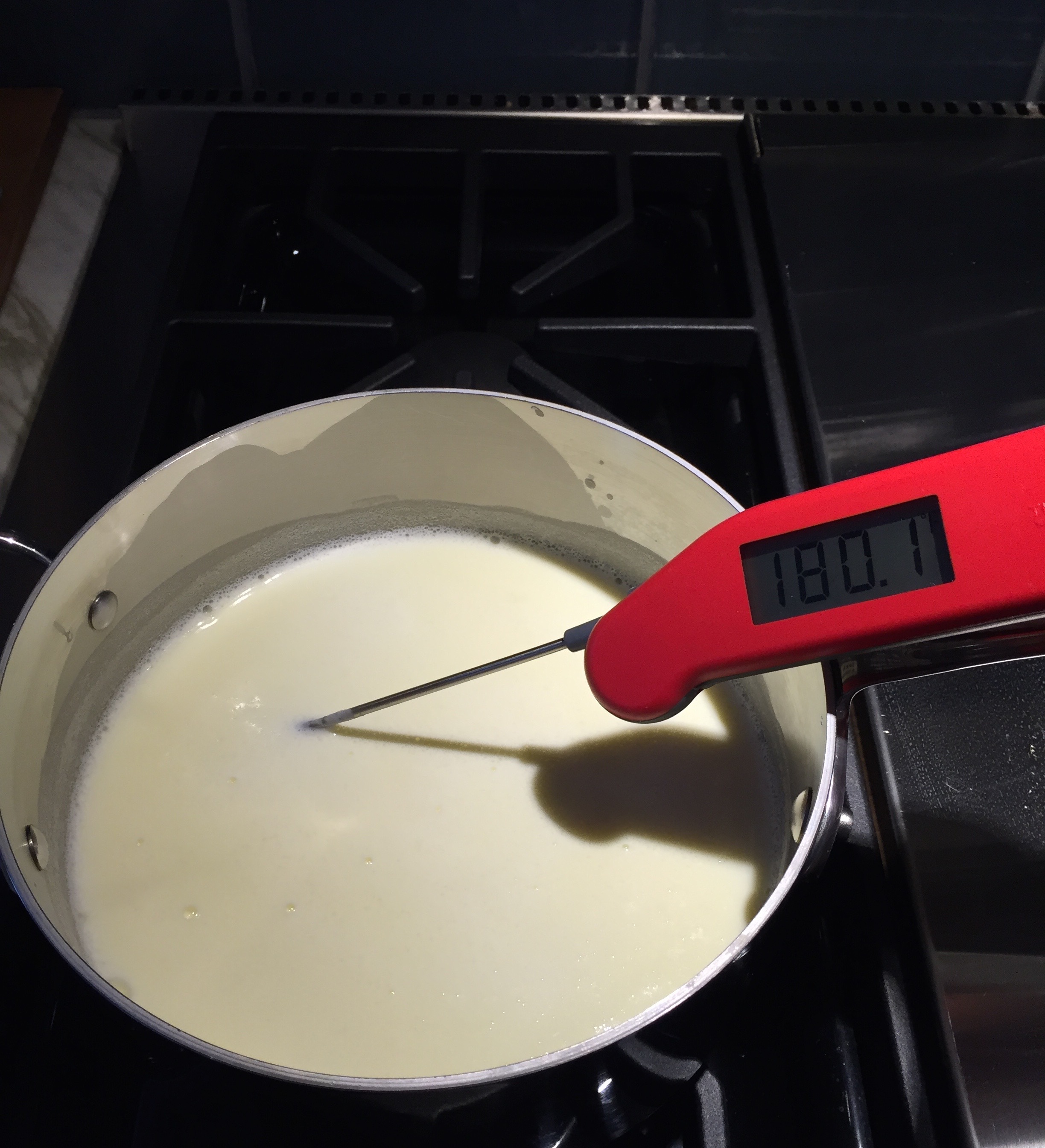 Combine milk and heavy cream in a saucepan. Gently warm the milk mixture over medium heat until it reaches 180°. Remove from heat.