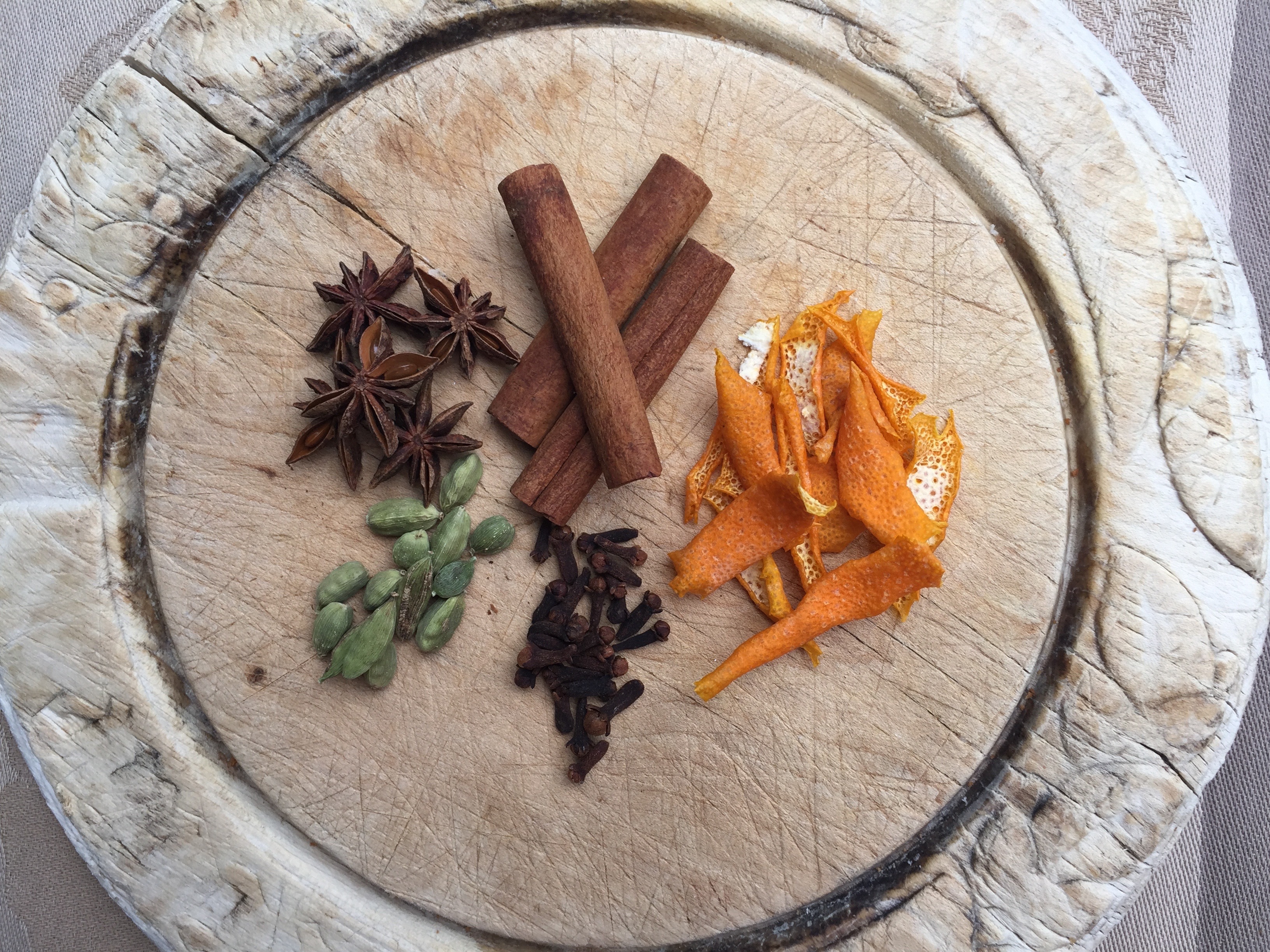 Below is my general blend, but it is just a guideline- for example, if I’d had allspice berries I would have thrown those in as well. Please play around (and let me know what you discover).